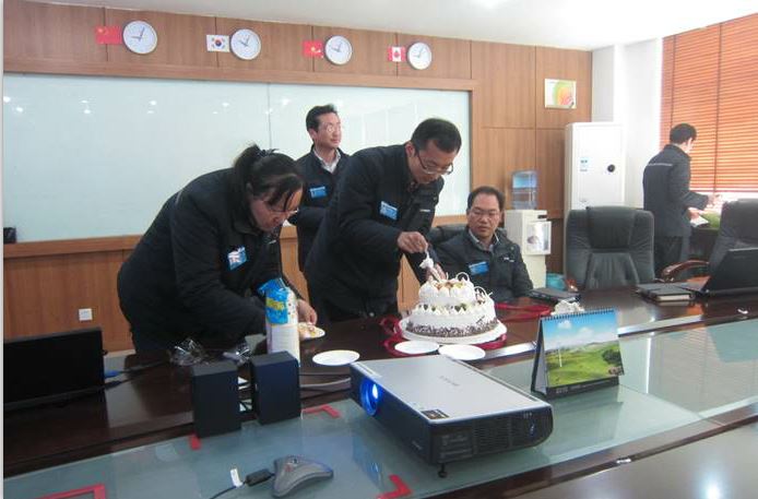 劉總帶領與會人員用切蛋糕、喊口號的形式慶祝新訂單的開始,勉勵大家要有