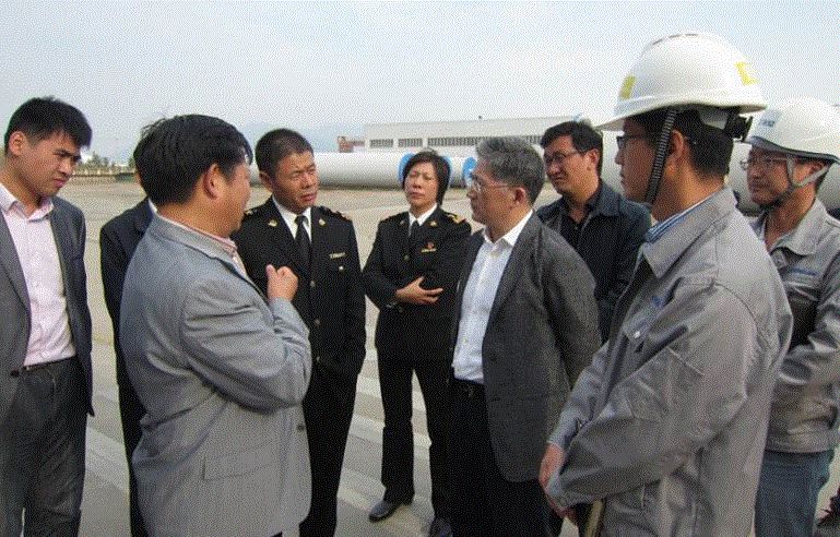 2015年10月28日下午,市政府黨組成員,上合組織物流園管委會副主任 胡文杰,市開發區、徐圩新區管委會、市口岸委以及連云港海關分管負責相關領導來到我公司視察工作。此次視察主要是就我市申報綜合保稅區(含開發區及徐圩新區)及保稅物流中心(B型)的發展情況作調研工作。我公司作為開發區龍頭型外資企業,受到考察組的格外重視和關注。調研期間,公司銷售部向考察組領導匯報了重山風力中國、重山集團的發展歷程以及交貨業績。