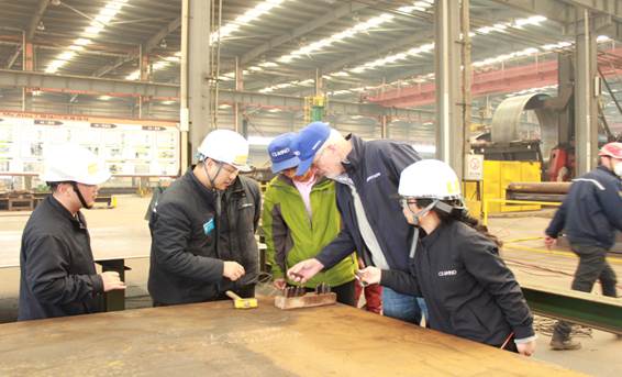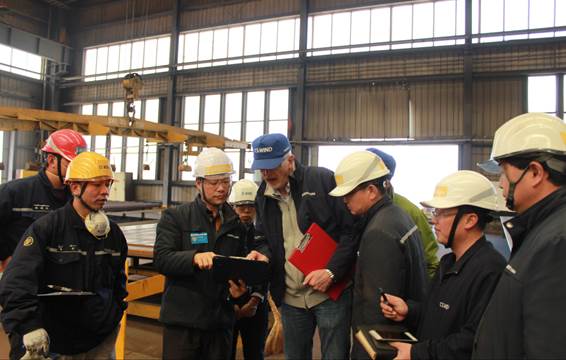 2016年3月23日至24日,來自Senvion的 Uwe Meesenburg和Xiaohan Wang兩人審核小組對我公司進行了為期兩天的管理體系審核。此次審核覆蓋范圍涉及到 公司認證資質、質量計劃及體系運作、設備及生產儲運能力等多個方面。審核于3月24日順利結束。審核小組對我公司在審核涉及到的各個方面表現都非常滿意,其中印象最為深刻的就是 公司所有員工展現出的精神面貌與干勁。 審核組長Uwe Meesenburg坦言,以我目前的組織和在生產風力塔架方面的豐富經驗,他對我公司能夠成功完成Senvion交付的訂單非常有信心。 圖為:劉容銑總經理(左二)向Uwe Meesenburg(右三)介紹鋼印號移植流程圖為:Uwe Meesenburg(左五)在黑塔車間查看產品檢驗記錄圖為:Uwe Meesenburg(左二)與劉容銑總經理(右一)就焊接工藝交換意見