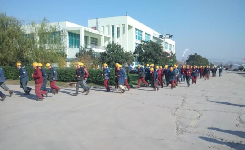 圖為:生產工人聽到消防警報后應急疏散到安全區域